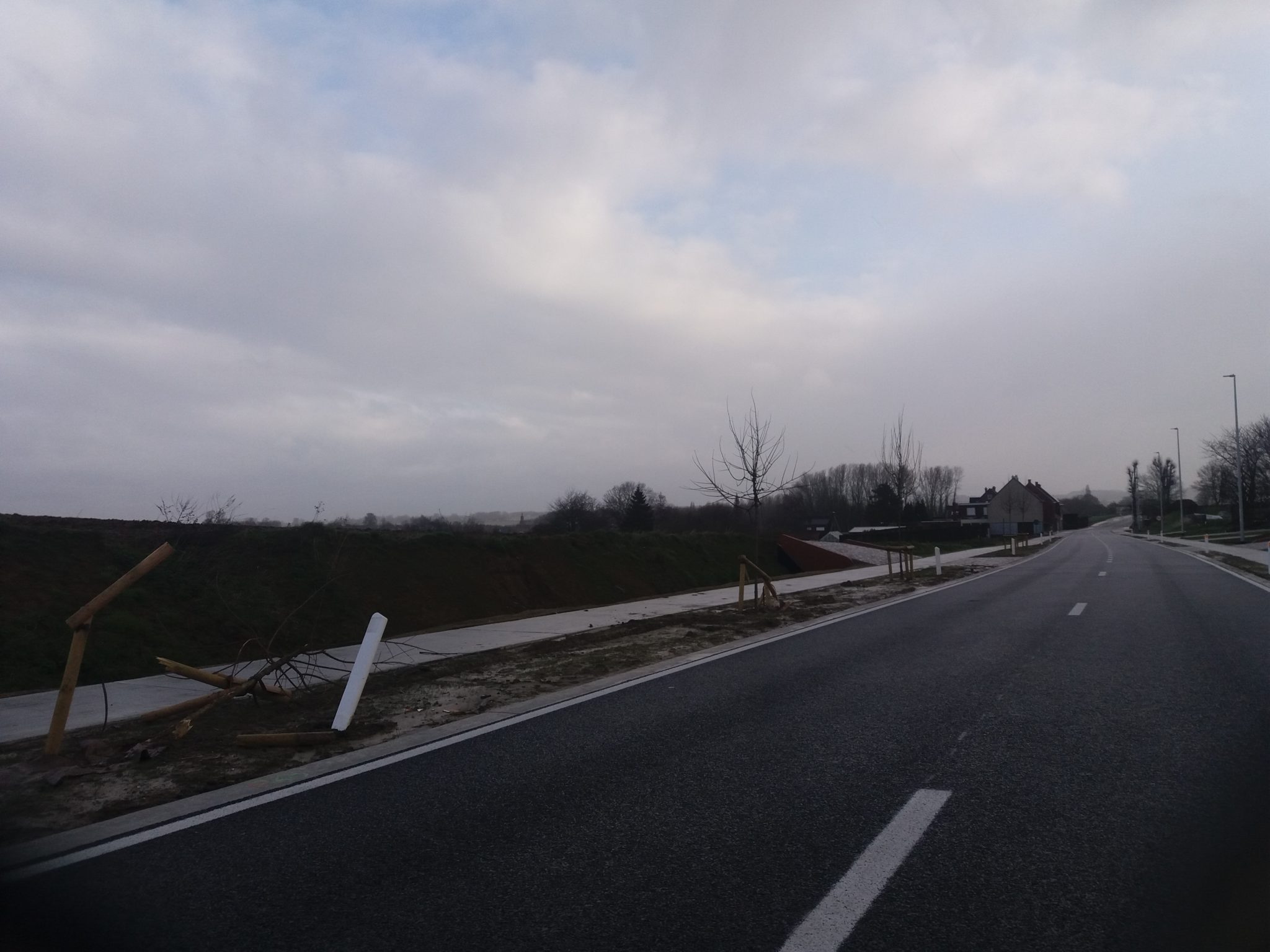 De weg Zwalm-Zottegem is nog maar enkele weken open en er werden al enkele bomen in de prak gereden. De bomen staan er dan ook heel dicht op mekaar en automobilisten die naast de weg terecht komen zullen er moeilijk één kunnen missen. Het begin van een lopende rekening.