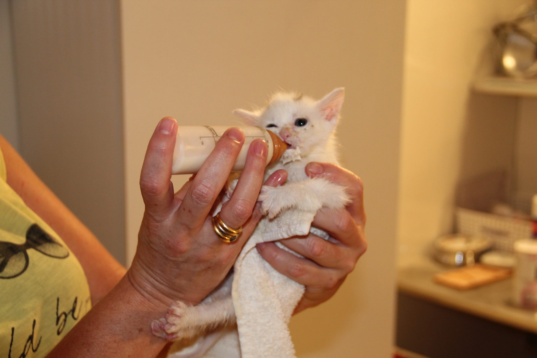 De katjes worden bij Poezengeluk altijd met veel liefde verzorgd. De ochtendshift vraagt veel werk. De kooien worden ontsmet alsook ’s avonds. Wilde kittens en andere spelen en maken hun bench vuil. Elke kat of kitten die mogelijk ziek zijn worden naar de dierenarts gebracht en krijken hun verzorging. Dit kan nagevraagd worden bij onze dierenarts.