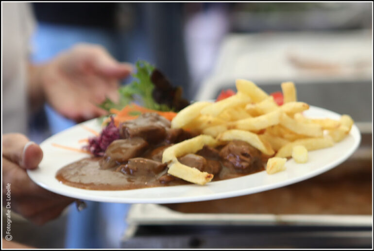 Het bleek nog maar eens, ‘Gijzel Kirmesse’, dat is ook sfeervol en lekker eten. En of de ‘Kirmesse stoverij’ smaakte. Met veel verfijning werden de 350 deelnemers (het aantal was beperkt) verrast met een heel verzorgd eetfestijn. De formule van ‘Gijzel Kirmesse’ blijft aanslaan. Ongecompliceerd lekker eten (overheerlijke stoverij, diverse groentjes, frietjes) à volonté en dit tegen een heel verteerbare prijs. Zeg zelf, 16 euro (kinderen 8 euro), voor een prikje als je ons vraagt. De ontvangst en de bediening van de ‘kermisvrienden’ was heel hartelijk. Alles verliep vlot. Kermisfanaten komen naar het eetfestijn voor de gezelligheid en voor de heerlijke stoverij. Een pluim voor traiteur Toulouse en de medewerkers. In de smakelijke bereiding primeert de hoedanigheid van het product en het puur vakmanschap. Een pluim voor Frode Lefevre. Verfijnd zonder pretenties. Een voorbeeld van een perfect georganiseerd eetfestijn. Traiteur Toulouse bouwde een heel goede reputatie op. Je eens op de ‘kirmesse’ laten verwennen mocht op zaterdagavond in het kermis-vierend