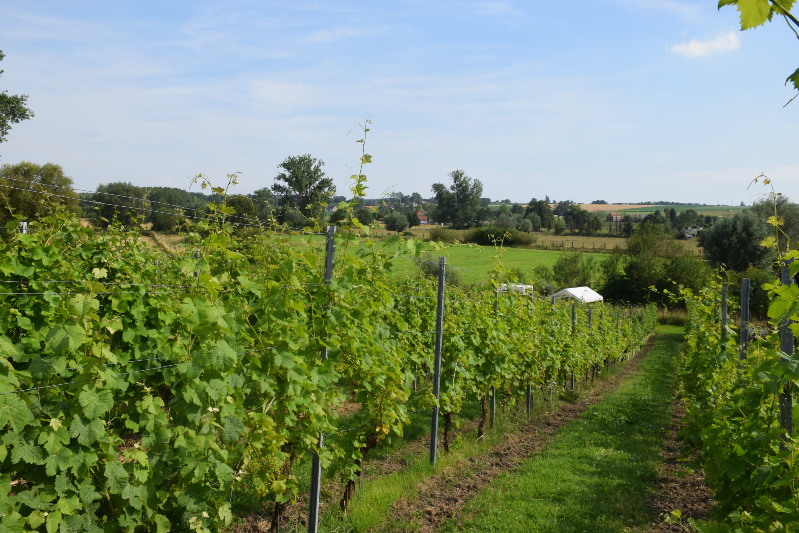 In 2013 kochten (Steffi en Jens) een woning in Zwalm met een stuk braakliggend landbouwgrond erbij. Dit stukje grond, perfect zuidgericht en onder helling, bleek alle vereisten te hebben voor de aanleg van een wijngaard. Na grondige voorbereiding en planning gingen de eerste wijnstokken in 2019 in de grond, waarbij we 125 stuks Johanniter (wit) en 125 stuks Regent (rood) aanplantten. De keuze voor ziekteresistente rassen was snel gemaakt, gezien deze veel minder gevoelig zijn voor schimmels en aantastingen.