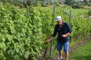 Jens: “In 2021 hebben we, samen met vader Danny, de kans gehad om een bestaande wijngaard over te nemen gelegen langs de Zwalmbeek. Deze wijngaard was aangeplant met ca. 450 stokken, bestaande uit verschillende resistente soorten. De vruchtbare grond, de aanwezigheid van zandsteen en het microklimaat zorgen voor een uniek terroir.