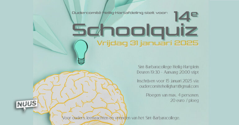 Op vrijdag 31 januari organiseert het oudercomité van het Sint-Barbaracollege Heilig Hartplein in Bevegem de 14de editie van de schoolquiz. De inschrijvingen lopen momenteel nog. Extra ploegen zijn meer dan welkom.