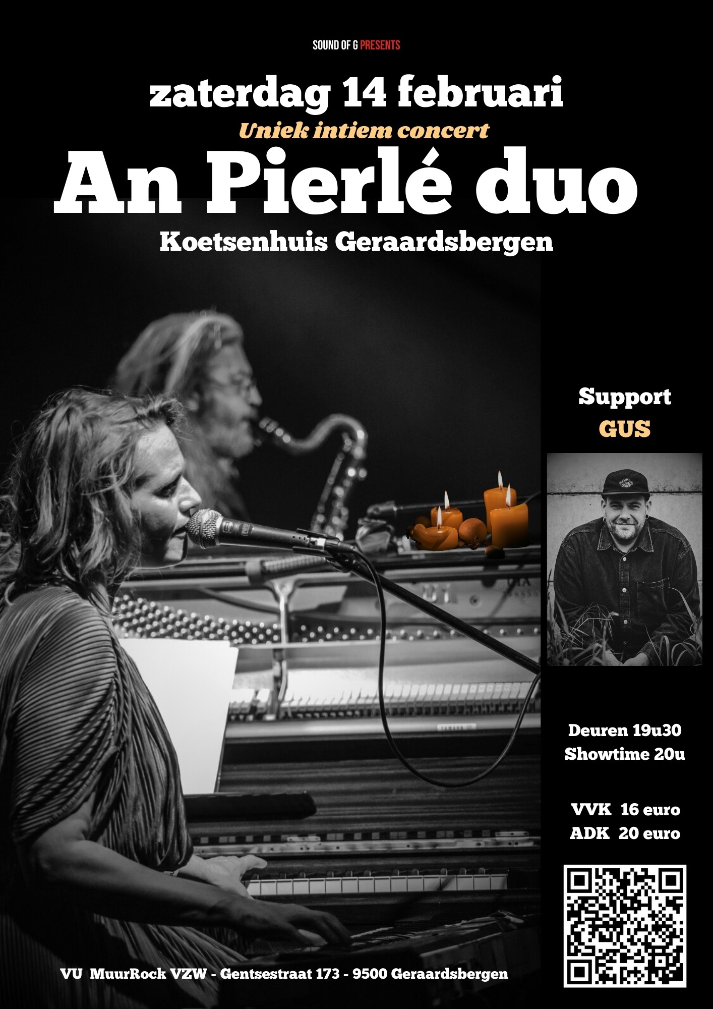 Geraardsbergen. Zaterdag 14 februari wordt het Koetshuis het decor voor een sfeervolle, meeslepende avond met An Pierlé en Koen Gisen. Muziek die barst van karakter, emotie en muzikale finesse. GUS brengt jullie alvast in de juiste sfeer.
