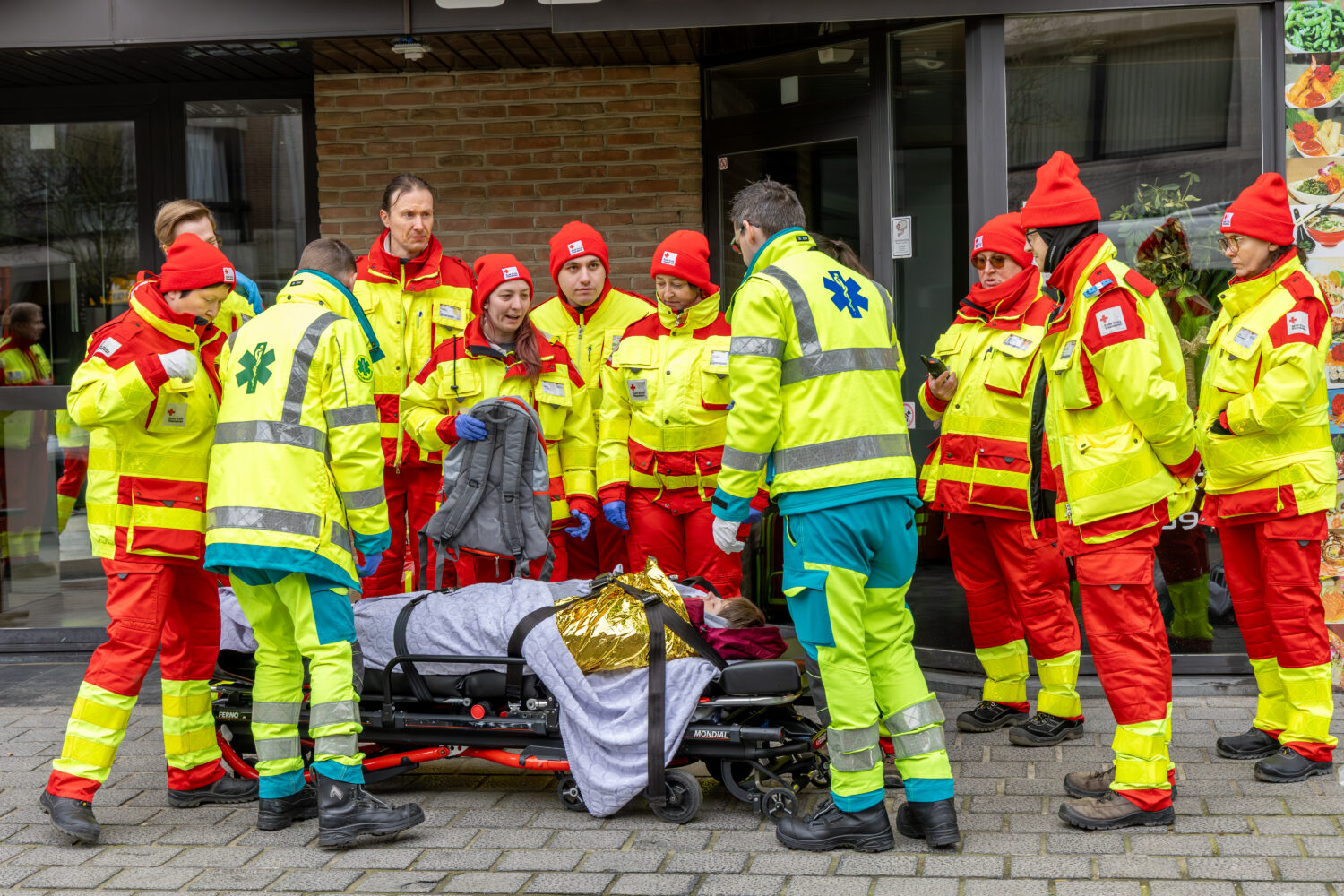 Praktische simulaties: inzet van simulanten om realistische scenario’s na te bootsen, waarbij hulpverleners leren werken in drukke omstandigheden en hindernissen (zoals een menigte) moeten trotseren met een draagberrie.