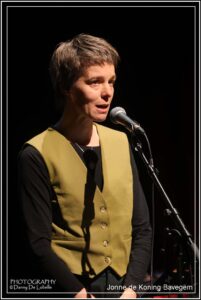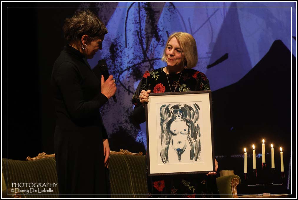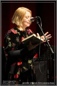 En of Jennifer Vrielinck zielsgelukkig was met de hoofdprijs, een kunstwerk van de befaamde illustrator Gerda Dendooven, een beeldende interpretatie van het winnend gedicht ‘De stille herschikking’. En ook het publiek kreeg een vinger in de pap. Het koos voor het gedicht ‘In zijn huid gegroeid’ van Bart Heyvaert. Hij wint een bon ter waarde van 100 euro te besteden bij een lokale handelaar. De prijs werd uitgereikt door illustratrice Eva Tack, die het promotiebeeld voor het volledige poëziewedstrijd heeft ontworpen.