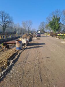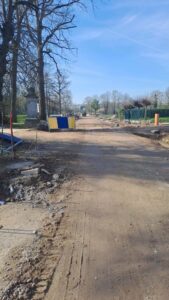 “Men is nu bezig met de bovenafwerking van aan de Meierij tot de schooldreef ( ingang). Men is nu ook volop bezig met het plaatsen van de riolering van aan de schooldreef tot bovenaan de Kasteeldreef.