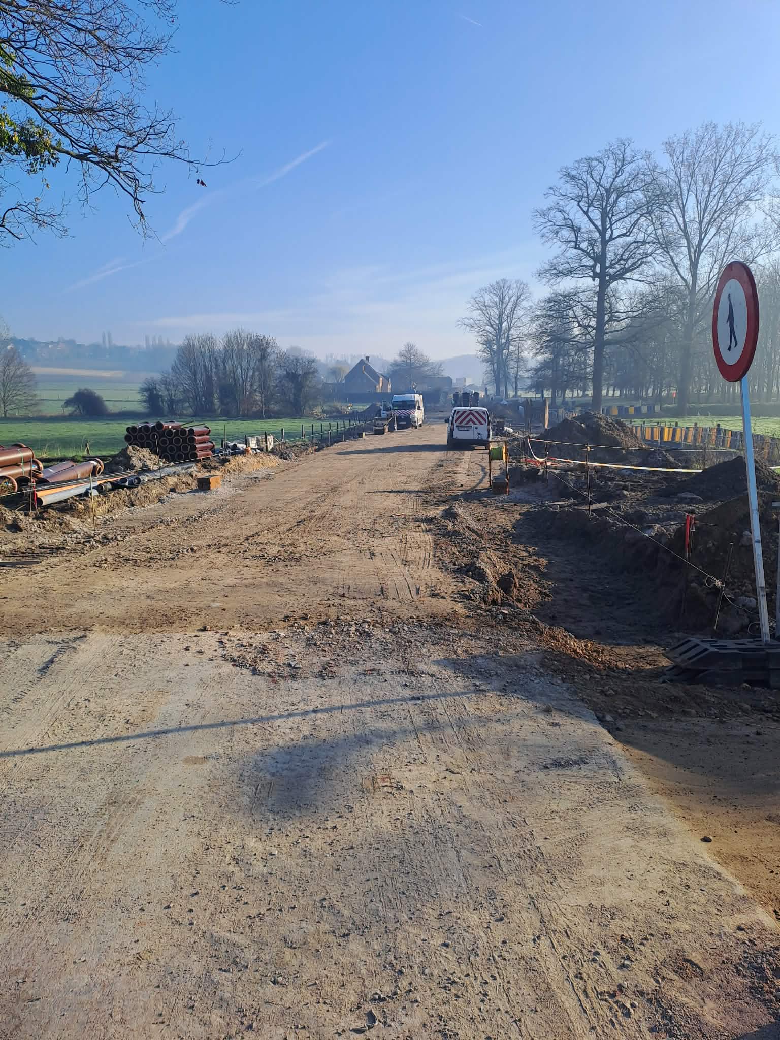 “Men is nu bezig met de bovenafwerking van aan de Meierij tot de schooldreef ( ingang). Men is nu ook volop bezig met het plaatsen van de riolering van aan de schooldreef tot bovenaan de Kasteeldreef.