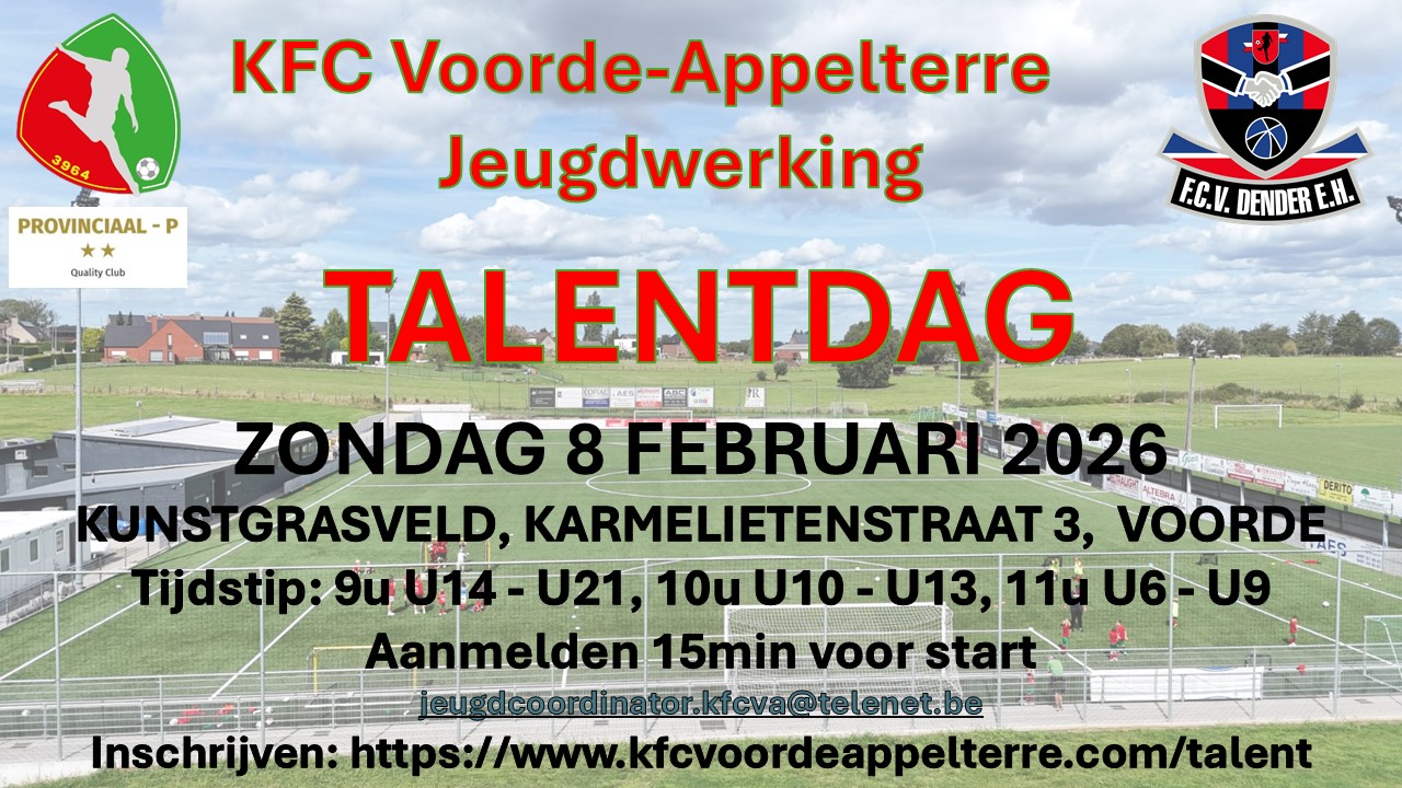 K.F.C. Voorde-Appelterre Karmelietenstraat 3, Voorde, Oost-Vlaanderen, BelgiumInschrijven via de link https://www.kfcvoordeappelterre.com/talent
