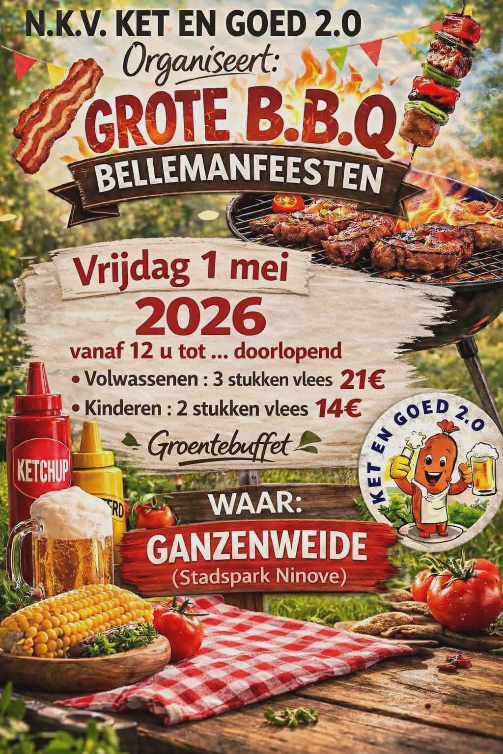 N.K.V. Ket en Goed 2.0 organiseert opnieuw een gezellige Grote BBQ tijdens de Bellemanfeesten!